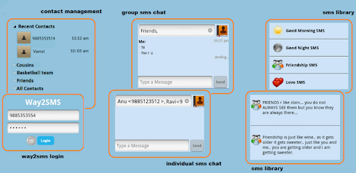 Way2SMS comes with attractive features. So, mostly users like it. Here is feature inside of the app based on official page from Google Play Store:Free SMS App!, Send SMS to any mobile in India for free.Using this Way2SMS App, you can send SMS for free to any mobile in India. The App integrates well with Way2SMS, 160By2 and YouMint gateways. So all you need is an account with these gateways and an internet on your mobile, then you are all set – to send unlimited free SMS to your buddies.